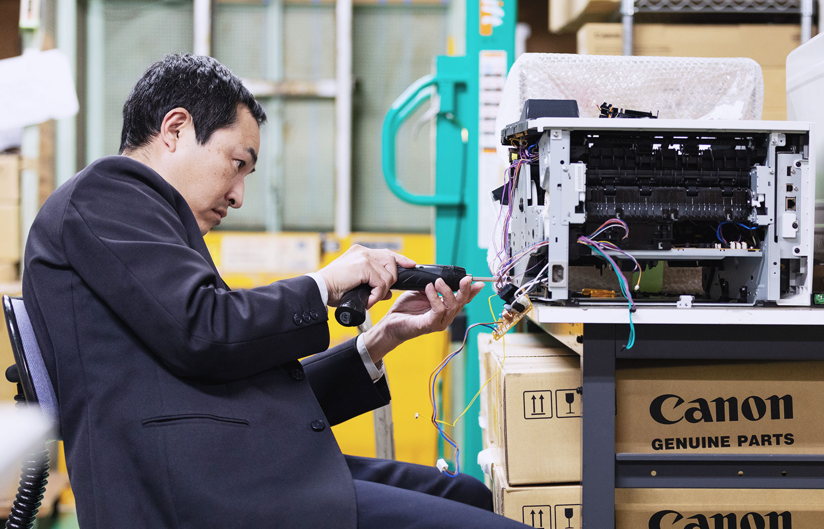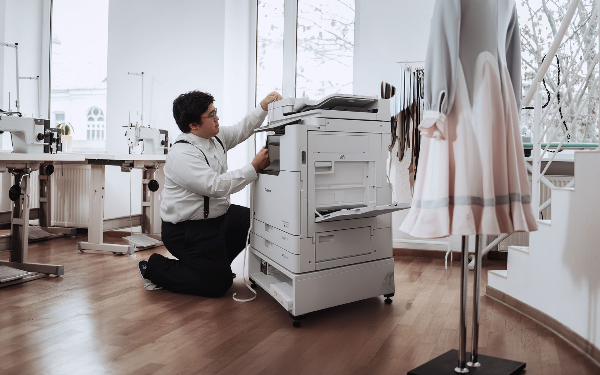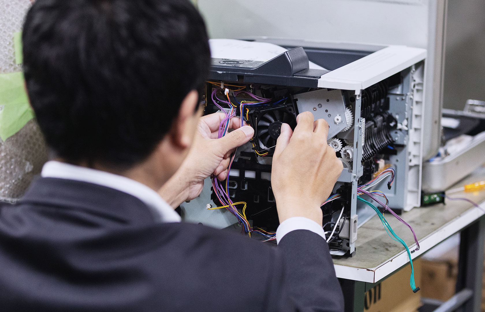 お客様の身丈や肩幅に合わせた複合機を仕立てる。